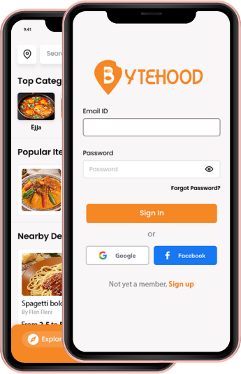Bytehood is a p2p service company that connects people through traditional food, share your food through our mobile application with nearby users or feel free to navigate through a diverse and rich selection of dishes provided by friendly neighbors.